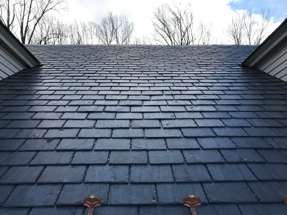 This project showcases the installation and repair of custom slate roofs, featuring high-quality craftsmanship and durable materials. The images capture the elegance and timeless beauty of slate roofing, highlighting the intricate patterns and textures.